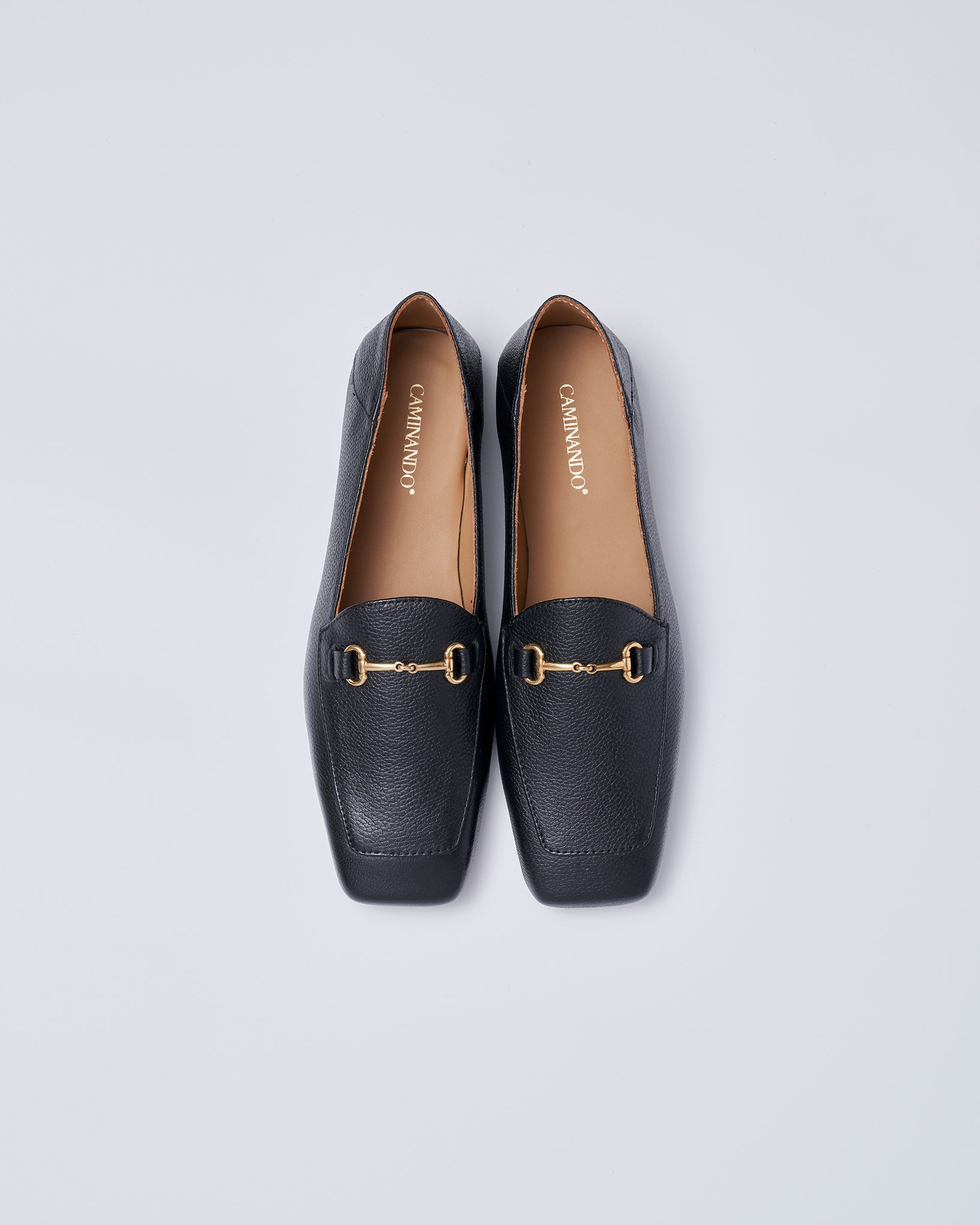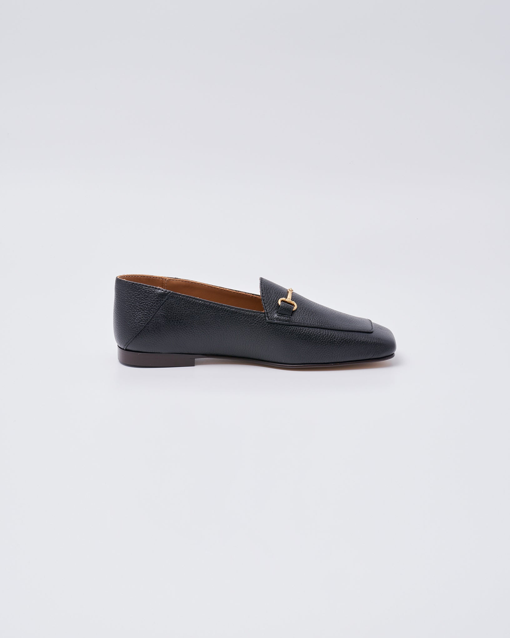 BIT SLIP ON SQUARE SHOES GRAIN LEATHER BLACK