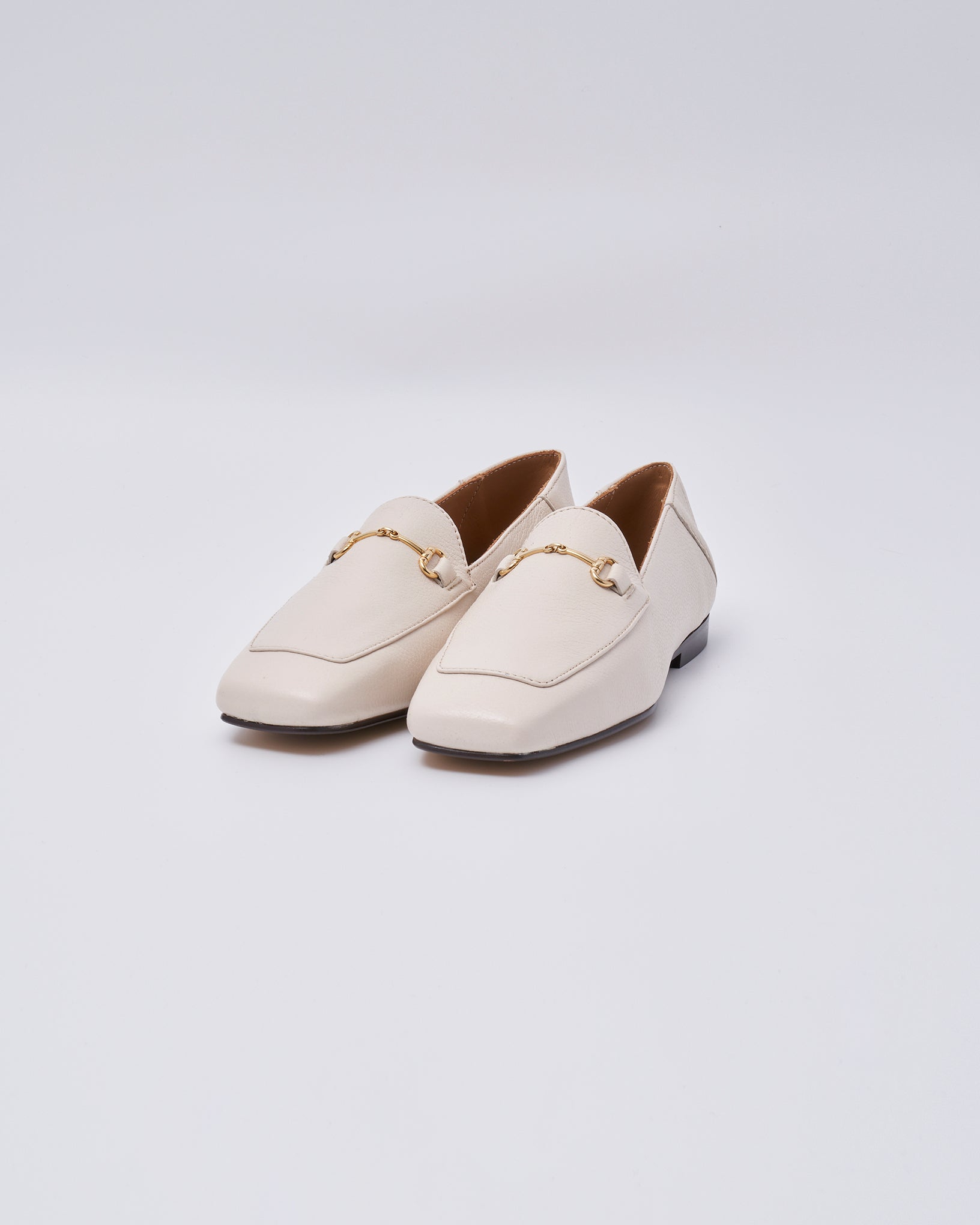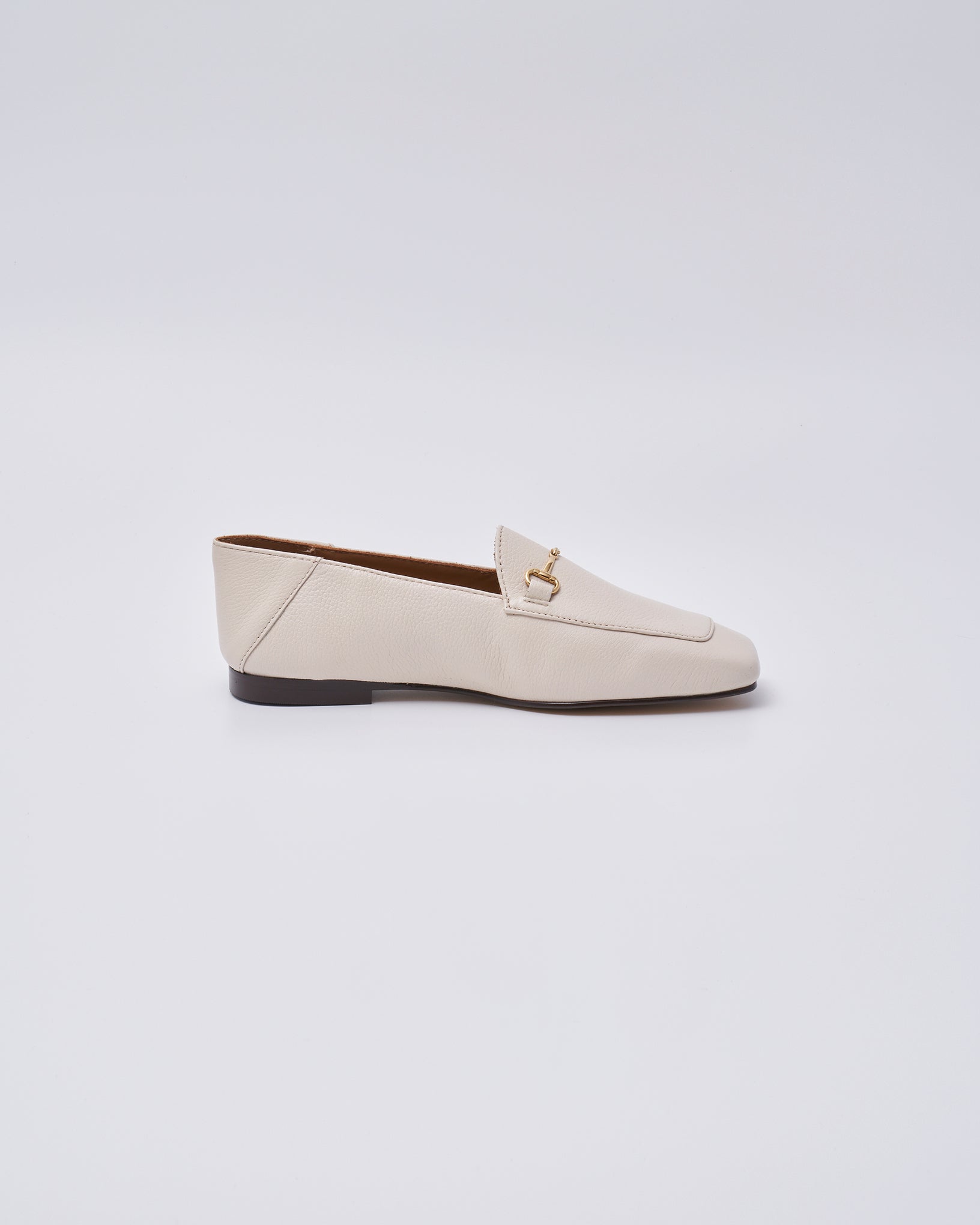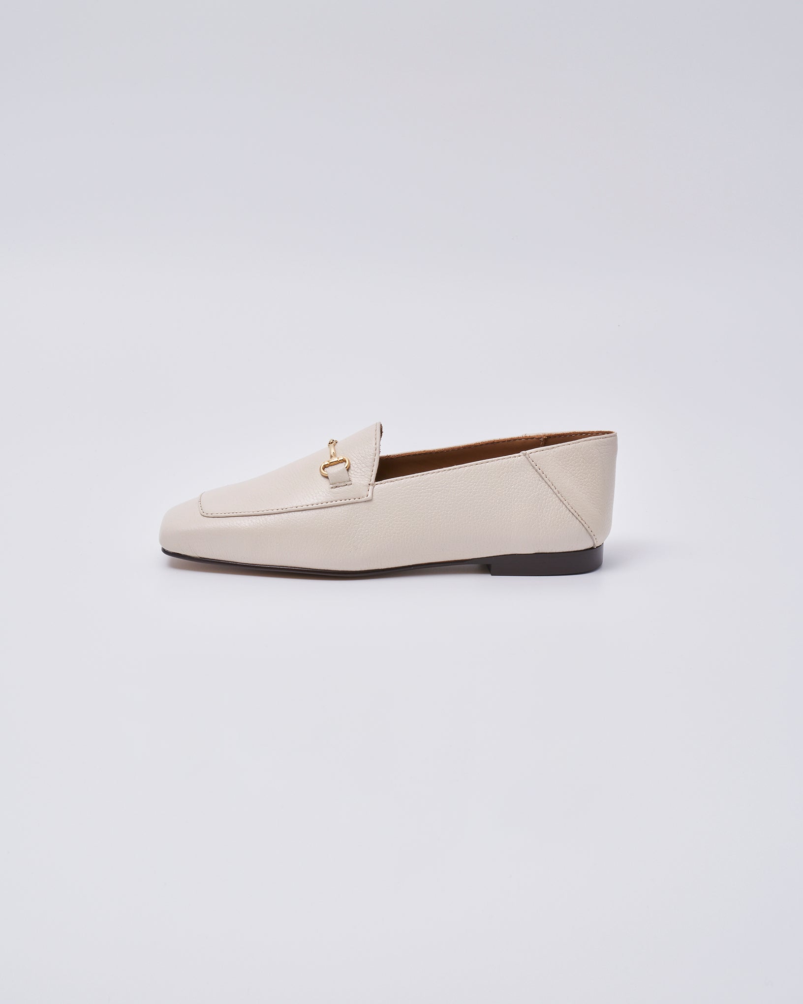BIT SLIP ON SQUARE SHOES GRAIN LEATHER WHITE