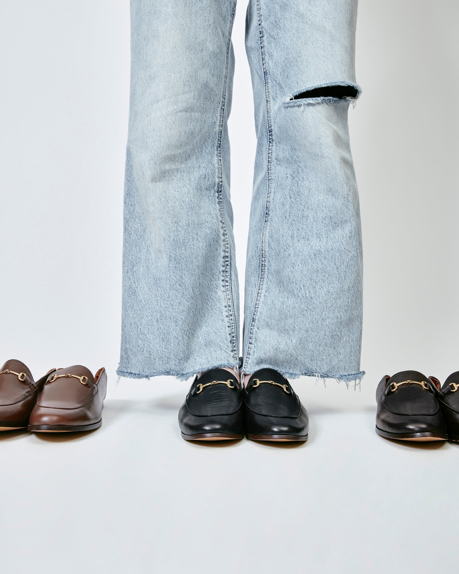 一から作成しているオリジナルビットの金具を使用し、踵は踏んでサンダルのようにも履ける2way仕様です。